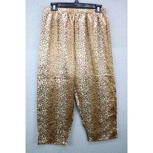 This is a Kathryn's Leopard Print Satin Pajama Set. The top is a Cami with adjustable straps. Laying flat, it measures: Armpit to armpit-17" and the length is 22". The pants have elastic at the 30" Waist and the Inseam is 23". It is in good condition. Very cute and comfy.