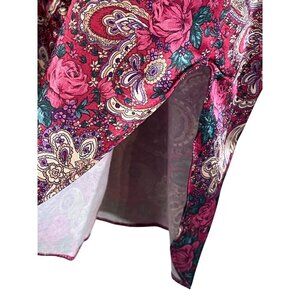 Kathryn Satin Floral Nightgown L Pink Paisley Vtg Boho Western Retro 80s