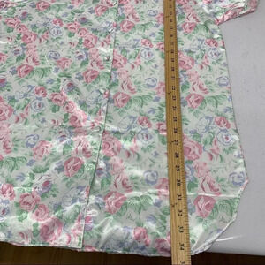 Kathryn Satin Nightshirt Small Pink Floral Button Front Soft Lining Short Slv