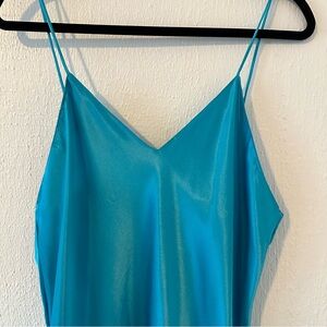 Kathryn Size: large Satin spaghetti strap midi dress Summer resort wear. I wore to Cabo Mexico! So many compliments! Very light weight material. Color: blue