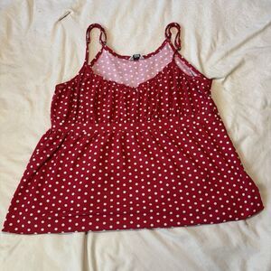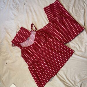 Kathryn Womans Large Pajama Set Cropped Pants & Cami Top Red Polka Dots Lounge