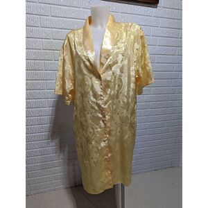 Step into sweet dreams wearing Kathryn Women's yellow floral Silky Short-Sleeve Button-Down nightgown. This 1X size is made of the softest fabric that is as airy as a summer breeze. Button it down to create an elegant and classic look, or leave it open for an effortless and breezy sleep ensemble.