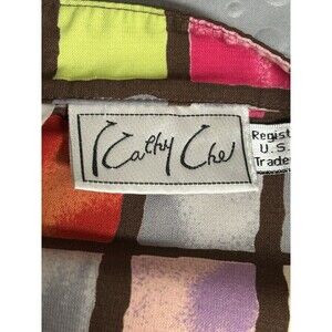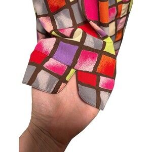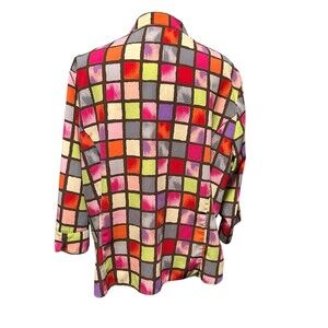 Kathy Che Colorblock Bright Colorful Squares Short Sleeve Button Blouse Wm's 18