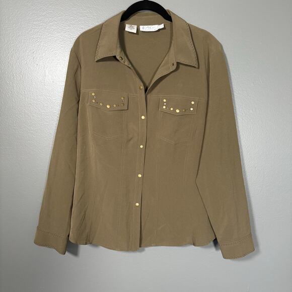 Kathy Che Women's Olive Green Military Style Studded Button Up Top - Size XL