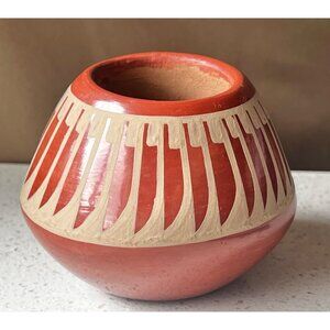 Kathy Gutierrez Handcrafted Red Clay Pottery Vase Tan Santa Clara