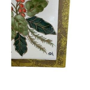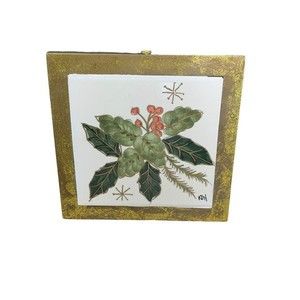 Kathy Hatch Classic Christmas Wooden Tile Trivet Holly Berries And Leaves