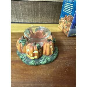Kathy Hatch Escape From Pumpkin Patch pumpkin votive holder Halloween-box. 4” wide. Please ask any questions and check out my other items. Have a joyful day -side wall
