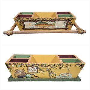 Kathy Hatch Rainbow Trout Wood Caddy Utensil Napkin Multi Purpose Holder Signed
