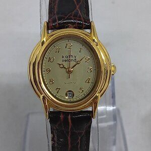 Kathy Ireland 1715 Women's 24mm Gold Tone Quartz Date Watch NEW BATTERY