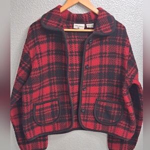Kathy Ireland Buffalo Check Fleece Cropped Jacket