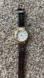 Stylish watch by Kathy Ireland. Gold-tone case with black strap. White dial with unique numbers.