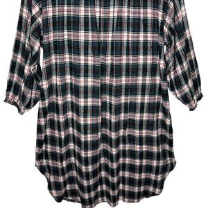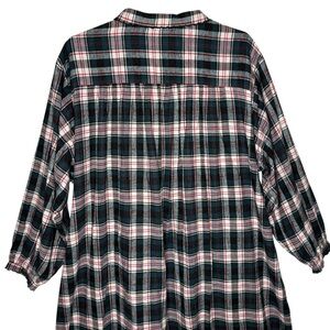 Kathy Ireland Green Tartan Plaid Maxi Length Flannel Night Gown 4X Long Sleeve