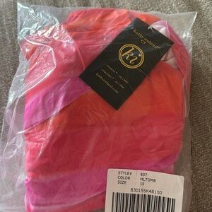 Kathy Ireland Pink Orange Ombre Ruffle One Shoulder Swim Suit Bathing Suit 10