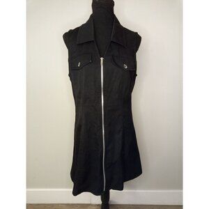 • Vintage Kathy Ireland Black Mini Dress Two Faux Chest Pockets Full Zipper on Front Collar Measurement Lying Flat Pit 2 Pit 18in Dress Length 34in RN 54121