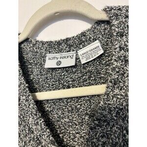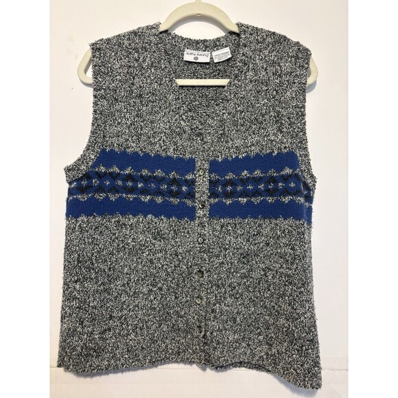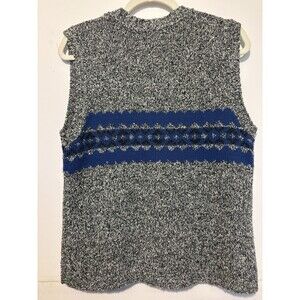 Kathy Ireland Women Sweater Vest Gray White Blended with Fair Isle Stripe Size L