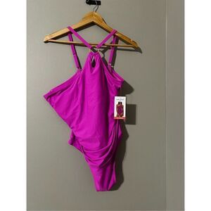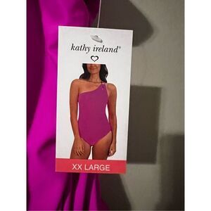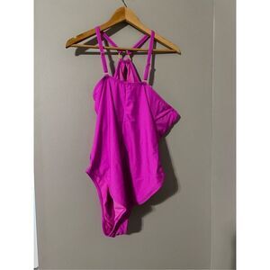 Kathy Ireland Women’s Size XXL One Shoulder Strappy Swimsuit Hot Pink NWT