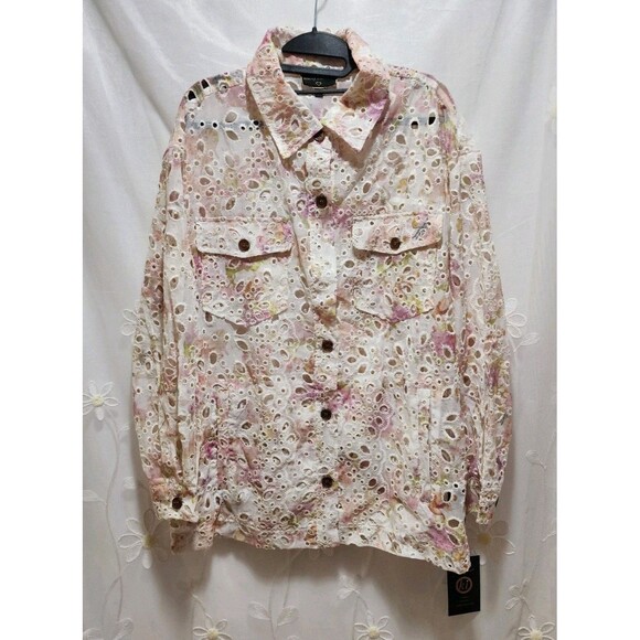 Kathy Ireland Womens XL Pink Shacket Victorian Floral Eyelet Relaxed Cottage