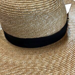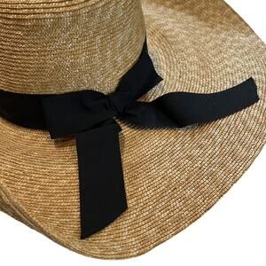Kathy Jeanne Tan Straw Sunhat, “Milan”, Black Ribbon Bow, NWT!