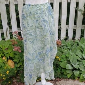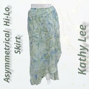 Kathy Lee Asymetrical Hi-low Chiffon Faux Wrap Skirt 10 Island Palm VGUC