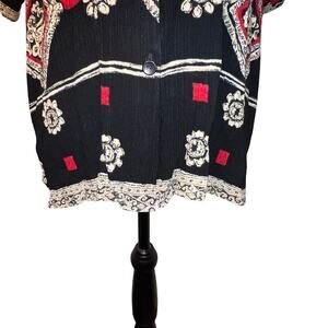 Kathy Lee size 14 gypsy goth BoHo gauzy stretch button in front short sleeve top