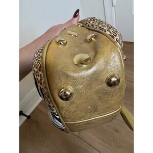 The purse is in great condition but the gold on the handles and side of the purse has rubbed off in some areas. The bag charm and hardware has some scratching. This is an authentic 2000s Y2K bag with various patchwork animal print fabric.