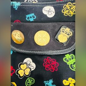 Kathy Van Zeeland Black Canvas Shoulder Bag with Charms