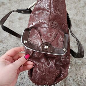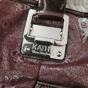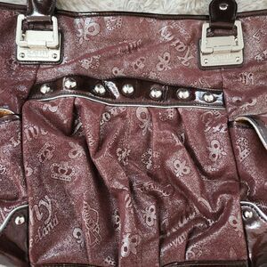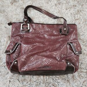 Kathy Van Zeeland Brick Red Metallic Crown Print Satchel Handbag