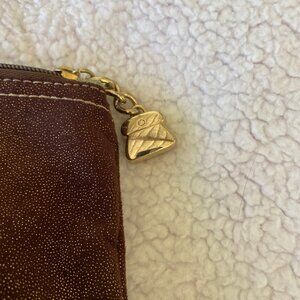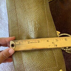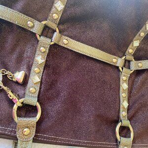 Beautiful faux shimmery brown suede bag with bronze faux leather trim