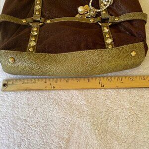 Kathy Van Zeeland Brown Bronze Embellished Large Shoulder Tote