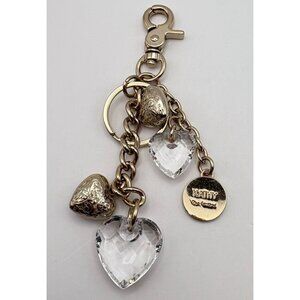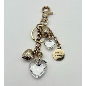 Kathy Van Zeeland Heart Charm Keychain Chunky Gold Tone with Clear Hearts