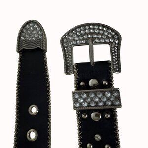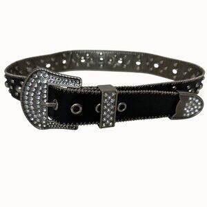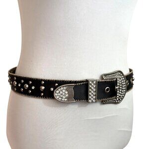 Rhinestone belt, Studded belt, Western belt, Cowgirl belt, Bling belt, Silver buckle belt, Embellished belt, Fashion belt, Statement belt, Kathy Van Zeeland, Y2K fashion, y2k belt, Size Small, Edgy belt, Rocker belt, Rhinestone, Statement Buckle, Rebel, Biker Chick, Studs, Rodeo Queen, Western