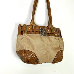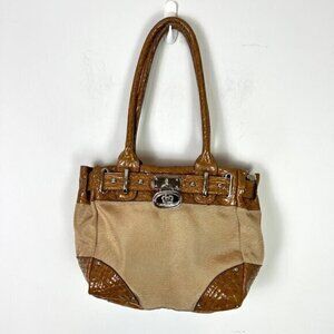 Kathy Van Zeeland Tan Camel Shoulder Hand Bag Faux Alligator Purse