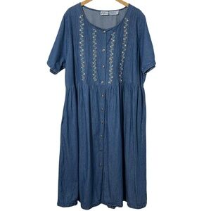 Kathy White Womens Denim Dress Plus Size 2X Vintage Embroidered Modest Soft