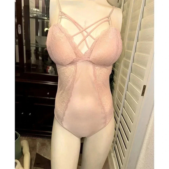 Kathy blush Lace and mesh Bodysuit Lingerie padded Push-Up teddy size S-M