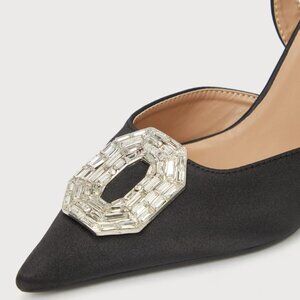 Katie Black Satin Rhinestone Slingback Pointed-Toe Pumps Billini