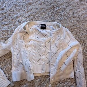 Katie J NYC White Cable Knit Sweater Top and Sweater set