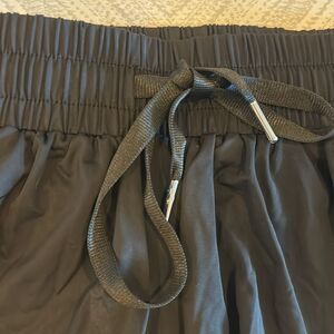 Katie J NYC Girls Black Flowy Drawstring Shorts. Spandex under layer. 2” inseam. Front of waist 11.5”. Gently worn. Size XS.