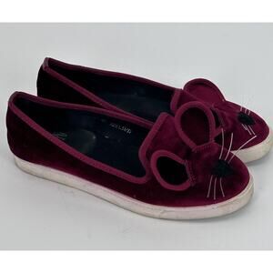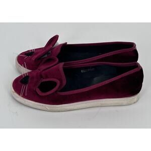 Adorable burgundy velvet Mouse with Whiskers Katie Judith Flats. Rubber sole, Sz 35. Preowned condition - see photos.