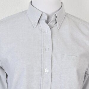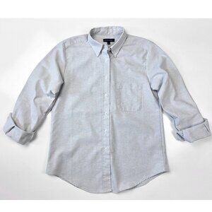 Button front. Button down collar. Long sleeve. Single chest pocket.