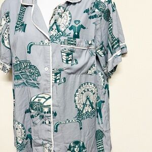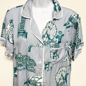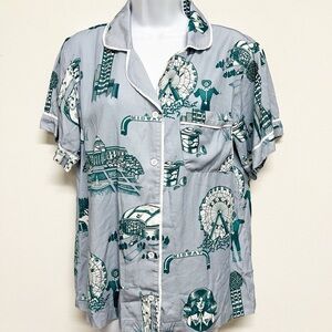 Katie Kime Womens Green Blue Dallas Themed Toile Short Sleeve PJ Top Size S Top Only