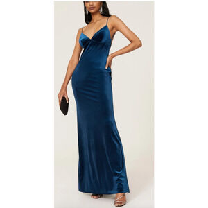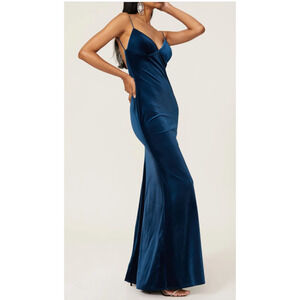 Katie May Ariel Gown Velvet Blue Mavi V-neck Sleeveless M