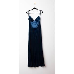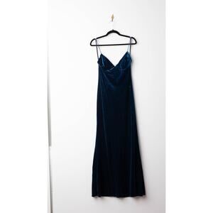 Navy blue velvet (90% Polyester, 10% Spandex). Sheath. V-neck. Sleeveless. Back zipper closure.