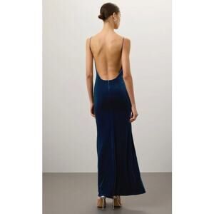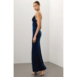 A daring dipped back makes for dramatic exits on this alluring velvet gown by Katie May.