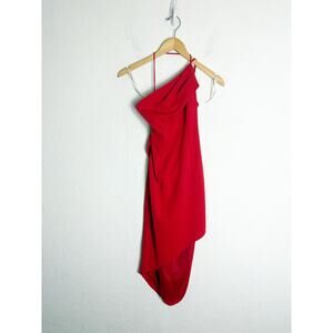 $215 Katie May Bananas Midi Dress Size Small Cherry Red Asymmetric One Shoulder