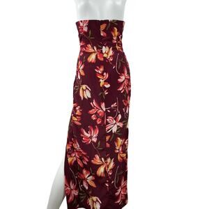 Katie May Come On Home Red Polyester Dress Size XS: fully lined, hidden back zipper closure, boned bodice, ruched satin fabric with tulip hem, measurements: 14 inch bust x 46 inch length.
