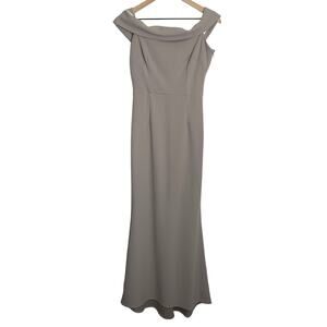 Katie May Legacy Maxi Gown Dress Off The Shoulder Dove Gray Womens Size 6