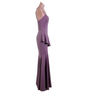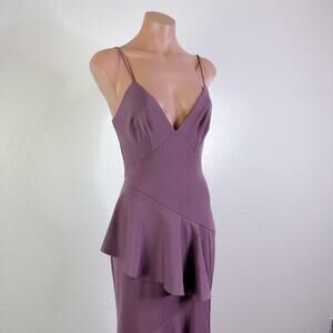 Katie May Sleeveless Plunging Neckline Ruffled Ariba Gown Dress Mauve Dusk S NWT