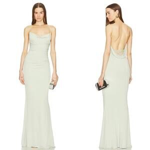 Katie May Sage Green Cowl Neck Lace Back Fitted Formal Event Surreal Gown - XL
