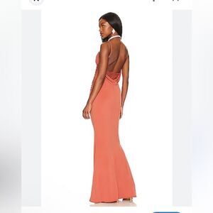 Katie May Surreal Gown Rust maxi dress drape back slip wedding guest Revolve M