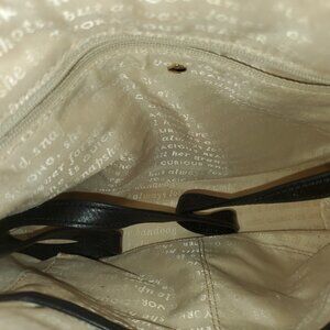 This is a kate spade new york leather satchel/top handle bag with a bowtie pattern. It features a zip closure, black handle/strap, gold hardware, and a creame fabric lining. The exterior is made of leather, and the key fob is included. The design is stylish and sophisticated, perfect for women looking for a chic handbag option.